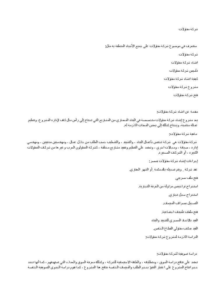 نموذج خطة عمل مشروع مقاولات