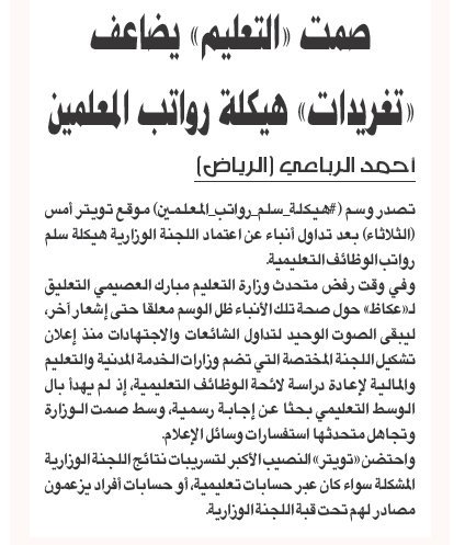 ملتقى معلمي السعودية Twitterissa صمت التعليم يضاعف تغريدات هيكلة رواتب المعلمين واستمرار الشائعات في ظل صمت المتحدث الرسمي Moe Gov Sa Https T Co Fveyjac65c Https T Co Rrajqyzfqh
