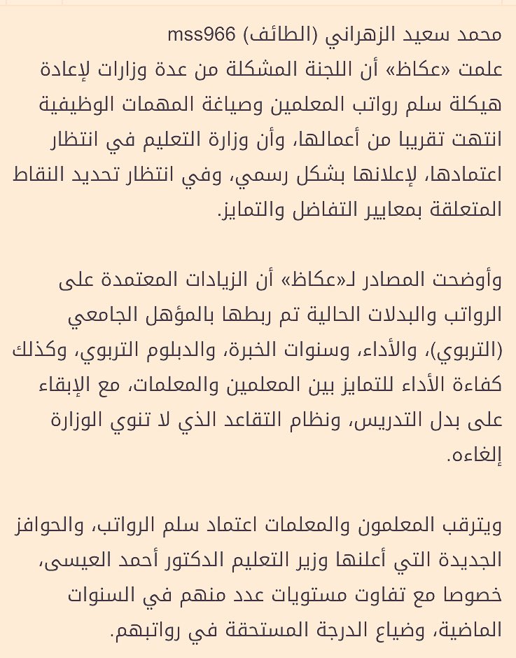 أخبار السعودية On Twitter هيكلة رواتب المعلمين جاهزة والزيادات تم ربطها بالمؤهل والأداء وسنوات الخبرة هيكلة رواتب المعلمين السعودية التعليم Https T Co 4zutyc9mr5