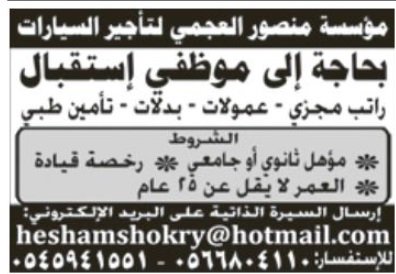 وظائف بدون تامينات جده 1439 أعلنت العديد من الشركات والمؤسسات السعودية حديثا عبر الصحف والجرائد الم حلية عن عديد من الوظائف الشاغرة وفق تخصصات م عنية مبينة موعد التقديم على الوظيفة وأماكن تلقي الطلبات وموعد الم قابلت الشخصية بالإضافة لتفاصيل عن هذه الوظائف مثل الراتب ومدة التعاقد مع الموظف والمكافآت والعلاوات والرتب السنوية وإسم الوظيفة على رأس كل ذلك. 22 بدون تامينات وظائف شاغرة متاحة. وظائف بدون تامينات بالرياض 1441 س ئل نوفمبر 20 2019 بواسطة rfef نرحب بكم زوارنا الأعزاء على موقع مجتمع الحلول حيث يسرنا أن نوفر لكم كل ما تريدون معرفته ونقدم لكم معلومات عن وظائف بدون تامينات بالرياض ١٤٤١ مختلفة. جميع الوظائف من خلال بحث واحد.